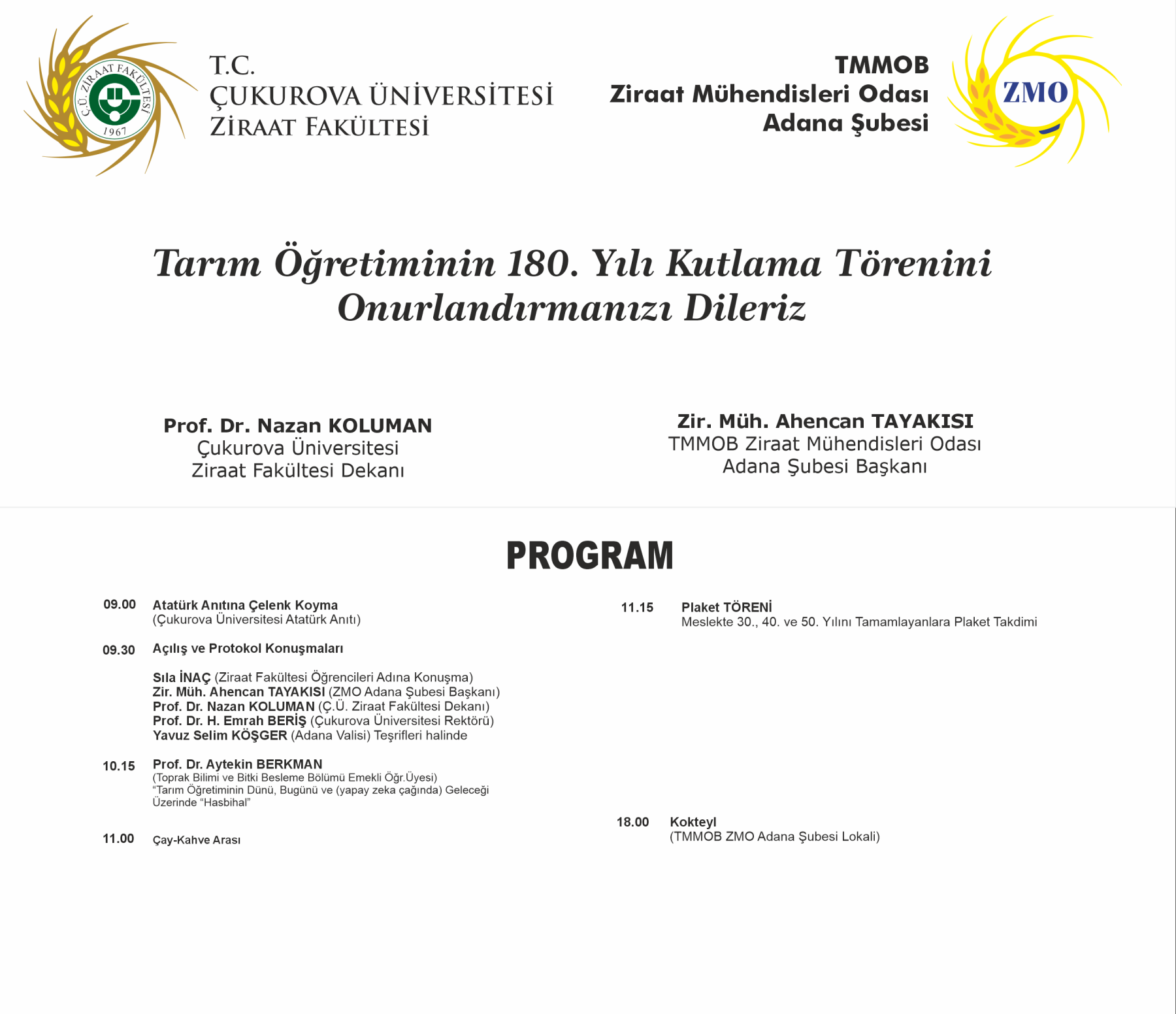 (Çukurova Üniversitesi Ziraat Fakültesi Dekanı)